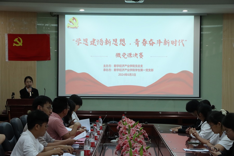 为进一步深入学习贯彻习近平新时代中国特色社会主义思想和党的二十大精神,推动党史学习教育走深走实,引导青年学生强化政治自觉。suncitygroup太阳集团党总支主办、学生第一党支部承办“学思践悟新思想,青春奋斗新时代”微党课比赛,并于6月3日晚在二政208开展微党课决赛。出席本次决赛的嘉宾有suncitygroup太阳集团党总支书记汪椿东、党总支组织员杨丹铭、学生第一党支部书记何杰安、学生第一党支部组织委员杨应涛、教师党员翁佳霖。