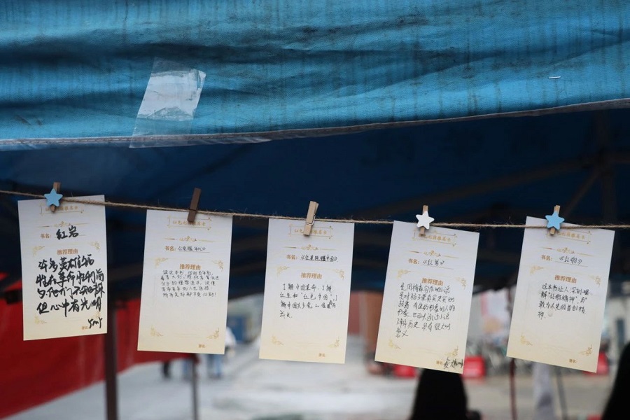 同学们在红色书籍推荐卡上,写出了书中的经典台词以及个人的阅读感想,其中被推荐最多的《红星照耀中国》与《红岩》,分享者们纷纷表示,在阅读的过程中深刻体会到了信仰的力量和革命的崇高,更加坚定了理想信念。