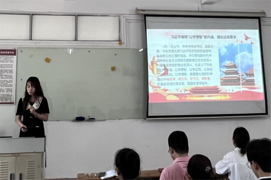 会议在嘹亮的国际歌声中拉开序幕。杨丹铭带领全体成员学习习近平总书记在听取陕西省委和省政府工作汇报时发表的重要讲话精神,深刻认识“以学增智”的内涵。她强调支部成员要从党的科学理论中悟规律、明方向、学方法、增智慧,把看家本领兴党本领、强国本领学到手,并从提升政治能力、提升思维能力、提升实践能力三个方面强化党性修养,加强能力和素质历练。不断深化对开展主题教育重大意义的认识,推动主题教育不断往深里走、往实里走、往心里走,将其转化为坚定理想、锤炼党性的强大力量。