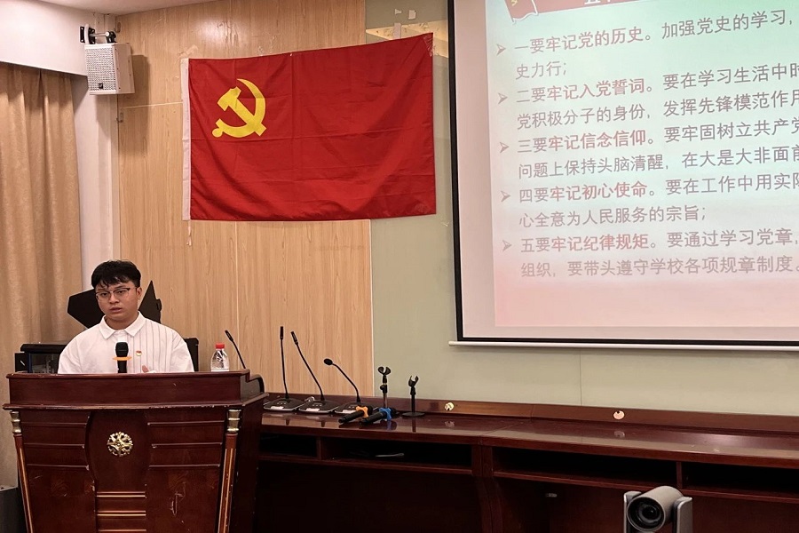 翁佳霖以“学党章强党性,守初心担使命”为主题进行授课,他带领全体成员深入学习党章的重大意义与重要内容,引导学员们不忘初心、牢记使命,提高政治思想素质和理论水平,强化了理论学习和理想信念教育。