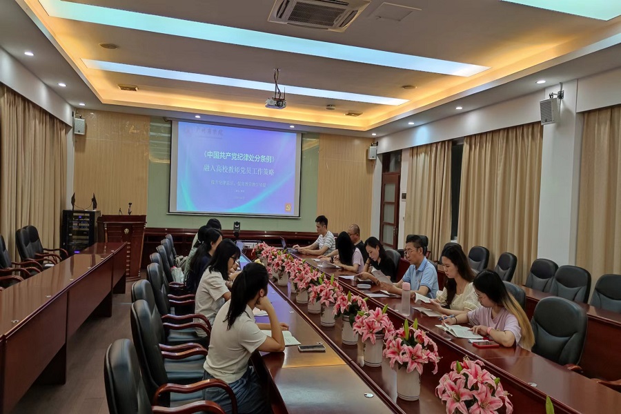 紧接着,进入活动的第二个议程——《中国共产党纪律处分条例》研讨会。在教工党支部书记胡雷的引导下,与会党员围绕主题展开了热烈而深入的讨论。大家结合自身教学实践,分享了将纪律意识融入课程设计、学生培养、学术研究等方面的经验与思考,探讨了如何通过提升纪律意识,有效解决教育教学中遇到的实际问题,进而推动教学质量的持续提升。研讨过程中,既有对先进典型的学习借鉴,也有对潜在风险的预警分析,充分展现了党员教师们主动担当、积极作为的精神风貌。