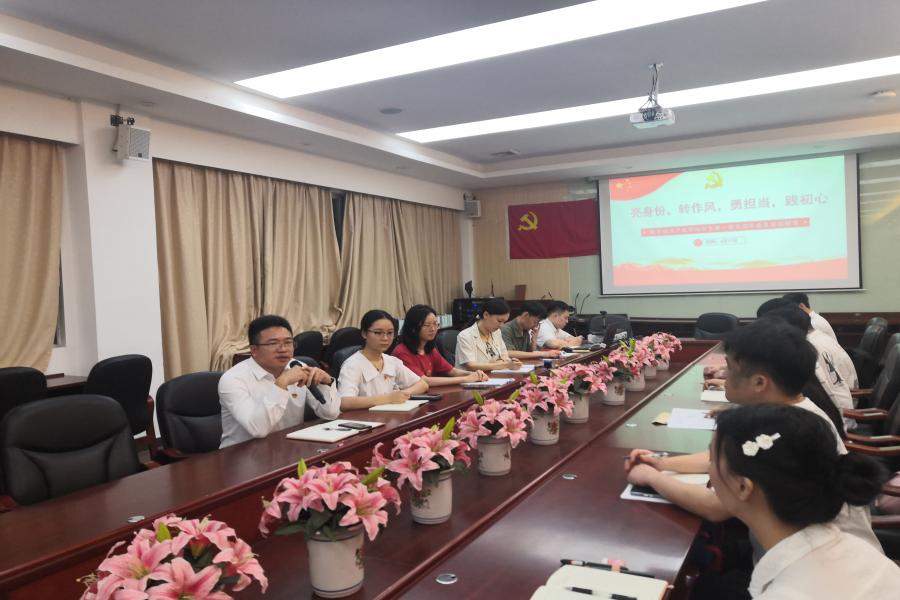 为深入学习贯彻习近平新时代中国特色社会主义思想,学习习近平总书记在中共中央政治局第五次集体学习时的重要讲话精神。suncitygroup太阳集团学生第一党支部于6月17日下午在第二行政楼208召开“亮身份,转作风,勇担当,践初心”党员教育专题会。出席本次会议的有党总支书记汪椿东、支部书记杨红烨、组织委员杨应涛、宣传委员潘慧颖与支部全体党员。本次会议由周文婷主持。