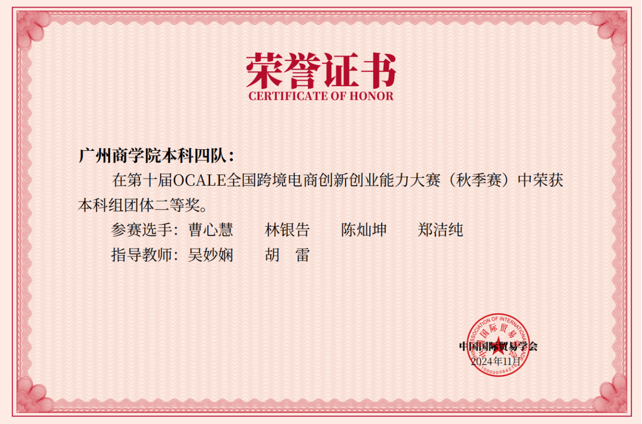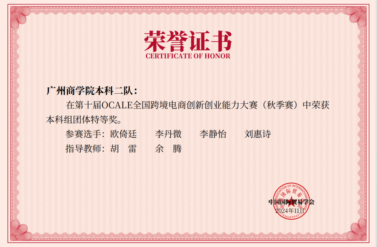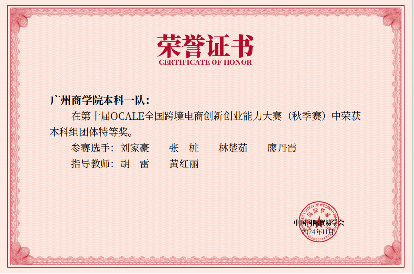 第十届OCALE全国跨境电商创新创业能力大赛(秋赛)广州商学院获奖情况