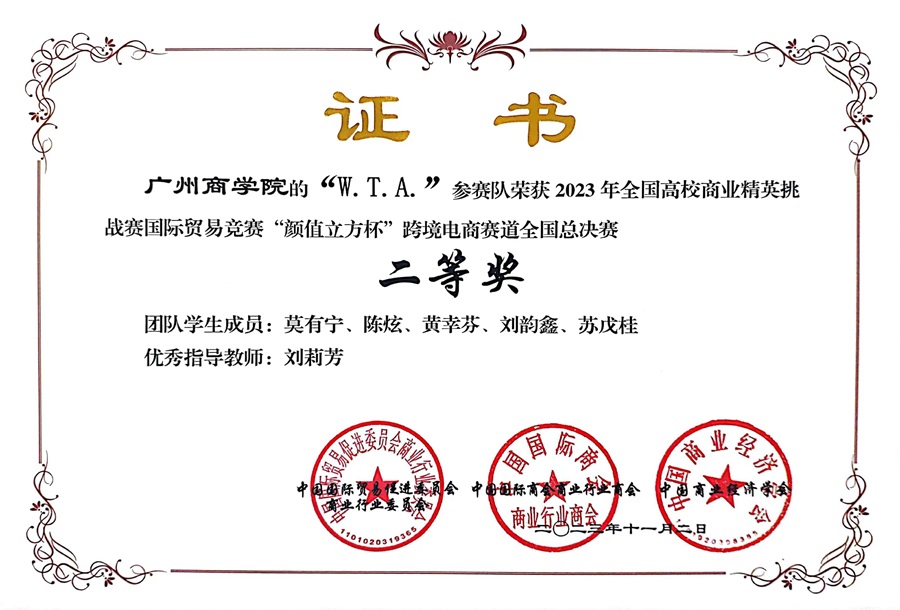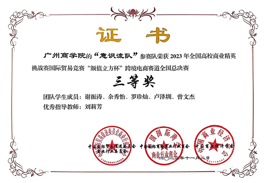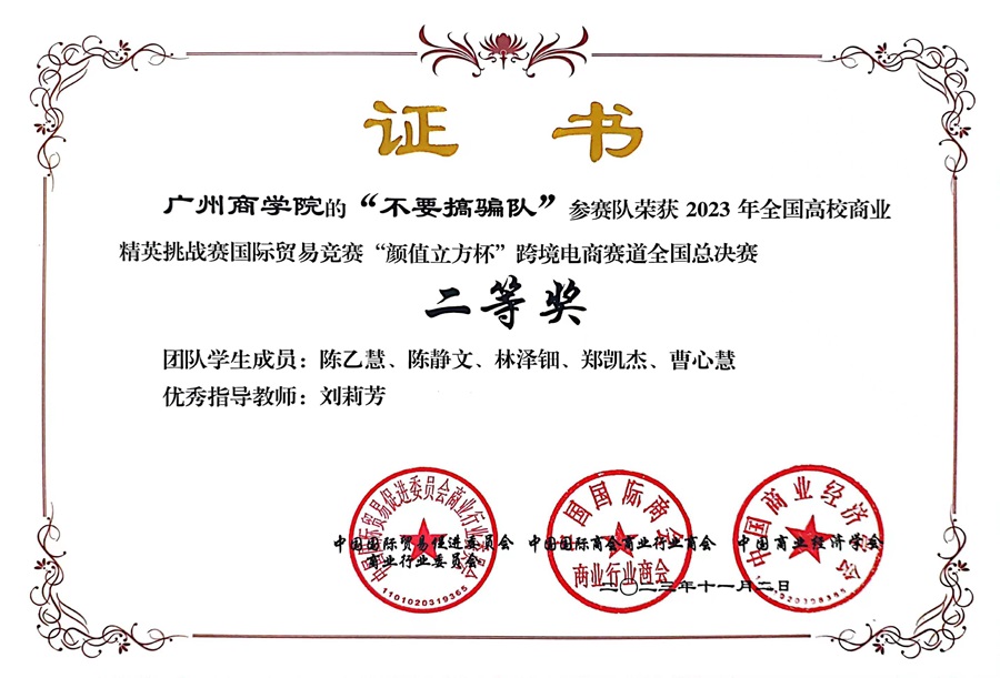 10月28日,2023年全国高校商业精英挑战赛国际贸易竞赛“颜值立方杯”跨境电商赛道全国总决赛圆满落幕。我校参赛团队“不要搞骗队”、“W.T.A.”和“意识流队”分别荣获两项全国总决赛二等奖和一项全国总决赛三等奖的优异成绩。