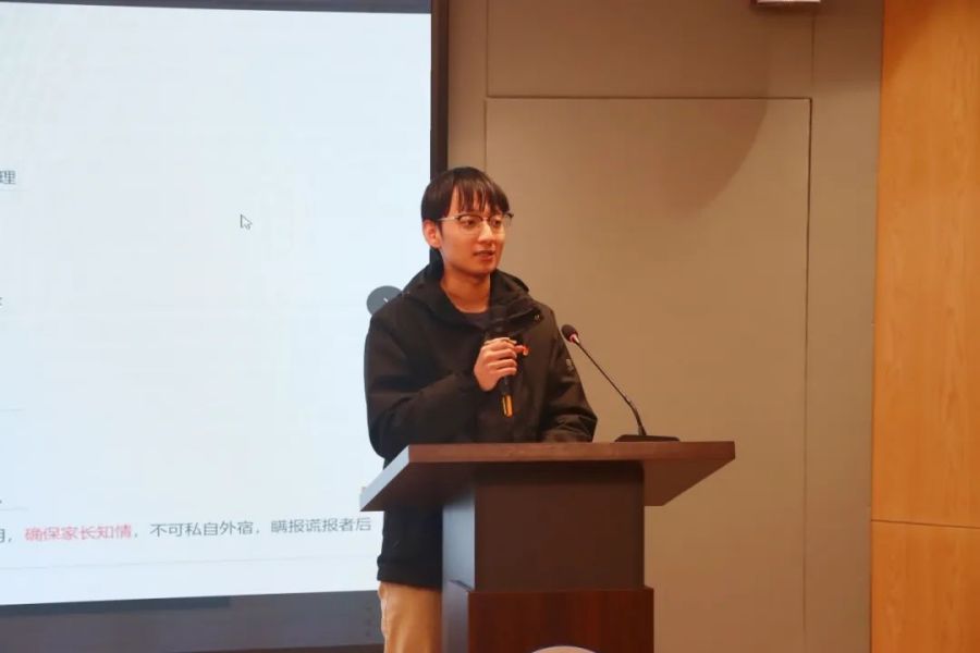 假期在即,翁佳霖、杨应涛对同学们提出三点要求:一是同学们要认真复习,积极备考,端正考试态度,严守考风考纪,坚决抵制作弊行为;二是同学们在离校前要再次检查宿舍,做到断水断电,返家途中也要注意交通安全;三是同学们要树立防诈观念,加强防诈意识,树立正确的消费观念,切忌贪图小利,不轻易转账或汇款。