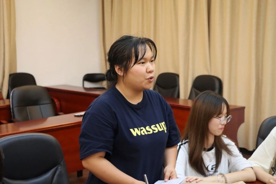 会议伊始,各部门代表介绍了其所在部门在军训期间所负责的具体工作。其中,新媒部提出系列创新推文计划,与往年常规推文相比将会增添学院公众号推文的互动性与实用性,激发新生对我院公众号的兴趣,提高我院公众号的关注度;团学秘切实与助导进行有效的团队沟通和协作,力争在军训宣传报道方面再创佳绩;文艺部则已初步拟定比赛方案,为我院学子在比赛中争优争先保驾护航;团学各部门都已为军训工作做好相应准备,为我院军训工作顺利进行提供坚实的保障。