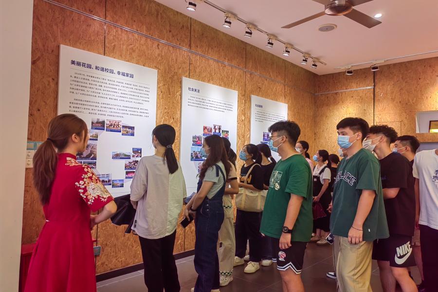 游园活动开始,两位辅导员以及助理辅导员带领新生从第一教学楼206出发,途经青思苑、行政办公楼、小东湖、幸福饭堂、创客空间、校友驿站及菜鸟驿站等一路打卡之后,来到校史馆,校史馆讲解员就我校发展历程展开讲解,透彻讲述了我校的的前身、发展与未来规划,使同学们坚定了“今日我以广商为荣,明日广商以我为傲”的信念。随后,全体新生一齐来到了学校的各个教学楼、体育运动室,向新生展示了校内各种学习设施、运动设施的使用。最后,助理辅导员还为新生们介绍了校园便利店、理发馆、医务室等功能场所,让大家对校园的建筑设施更加了解,对校园的情谊更加浓厚,进一步加深了新生对校园环境的兴趣与对校园生活的憧憬。