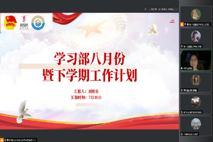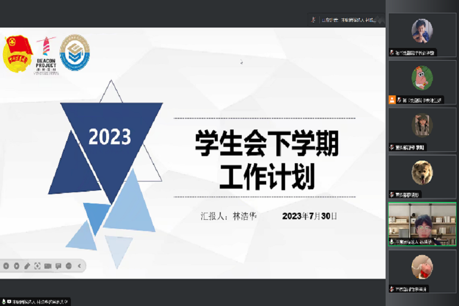 为深入学习宣传贯彻习近平总书记的重要讲话精神,深刻感悟其对青年工作的高度重视、对广大青年的殷切期待,深化思想政治引领,suncitygroup太阳集团学生会于7月30日晚在腾讯会议开展suncitygroup太阳集团学生会“深思善行明大局,苦干实干谱新章”七月例会。团委副书记兼学生会指导老师杨丹铭及学生会全体成员出席本次会议。