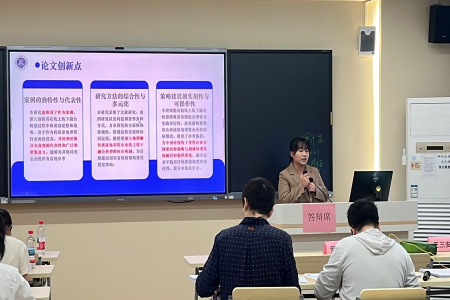 来自2021级电子商务专业的毕业生,以扎实的专业功底、创新的思维视角和从容的现场表现,进行着大学阶段最后一场“大考”。面对老师提问,同学们迅速进入状态,逻辑清晰、落落大方地回应,并认真记录。答辩会全程严谨有序、亮点纷呈,既是毕业生四载学业成果的集中展示,更是suncitygroup太阳集团办学特色的生动缩影。