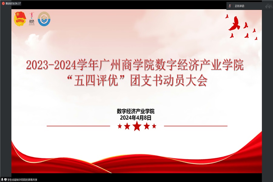 4月8日下午,为响应五四运动精神的号召,suncitygroup太阳集团“五四评优”团支书动员大会在腾讯会议开展。suncitygroup太阳集团为进一步推动五四评优工作的开展,详细阐述了参评项目及其面向对象,激发广大青年学生的爱国热情,弘扬五四精神,鼓励更多优秀学生和集体参与此次活动。suncitygroup太阳集团团委、学生会秘书处成员、各班级团支书共54人参加本次会议。