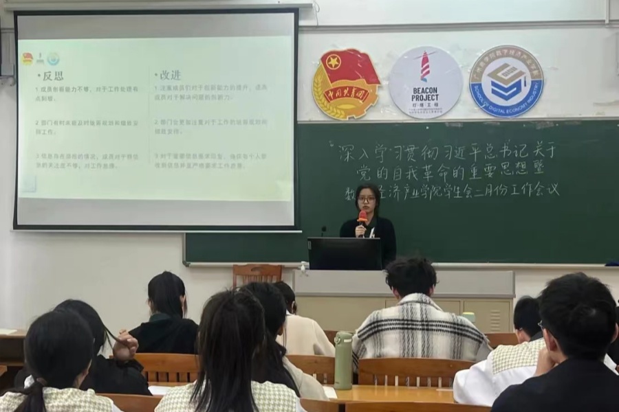 随后,学生会全体成员对于领学内容进行题目竞答,在此过程中全体成员提高了对于党的自我革命的认识。各部门代表就二月工作情况及三月工作计划进行汇报与答辩。