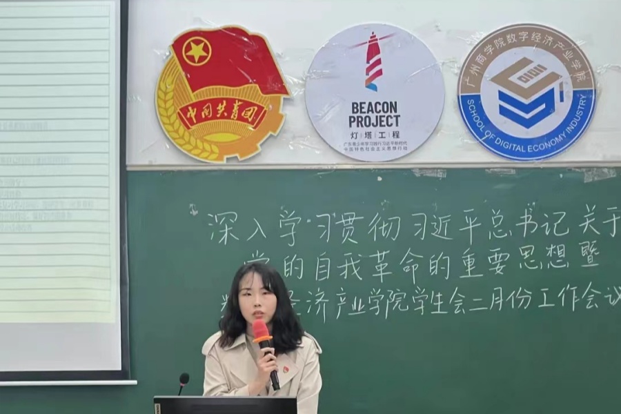 会议尾声,杨丹铭、何杰安对会议进行总结。杨丹铭老师首先由党的自我革命的核心内容引申到学生会的各项工作当中,强调创新在部门工作中的重要性。同时,她提出学生会各部门之间应加强合作与沟通,互相学习借鉴工作经验,共同提高工作效率,积极发挥学生会的思想引领作用。何杰安老师表示,学生会全体成员要把工作以及学习融入到日常生活中,多思考,勤尝试,通过日常思想学习及工作实践,提升自身思想觉悟以及个人综合素养,让部门工作更富有意义。