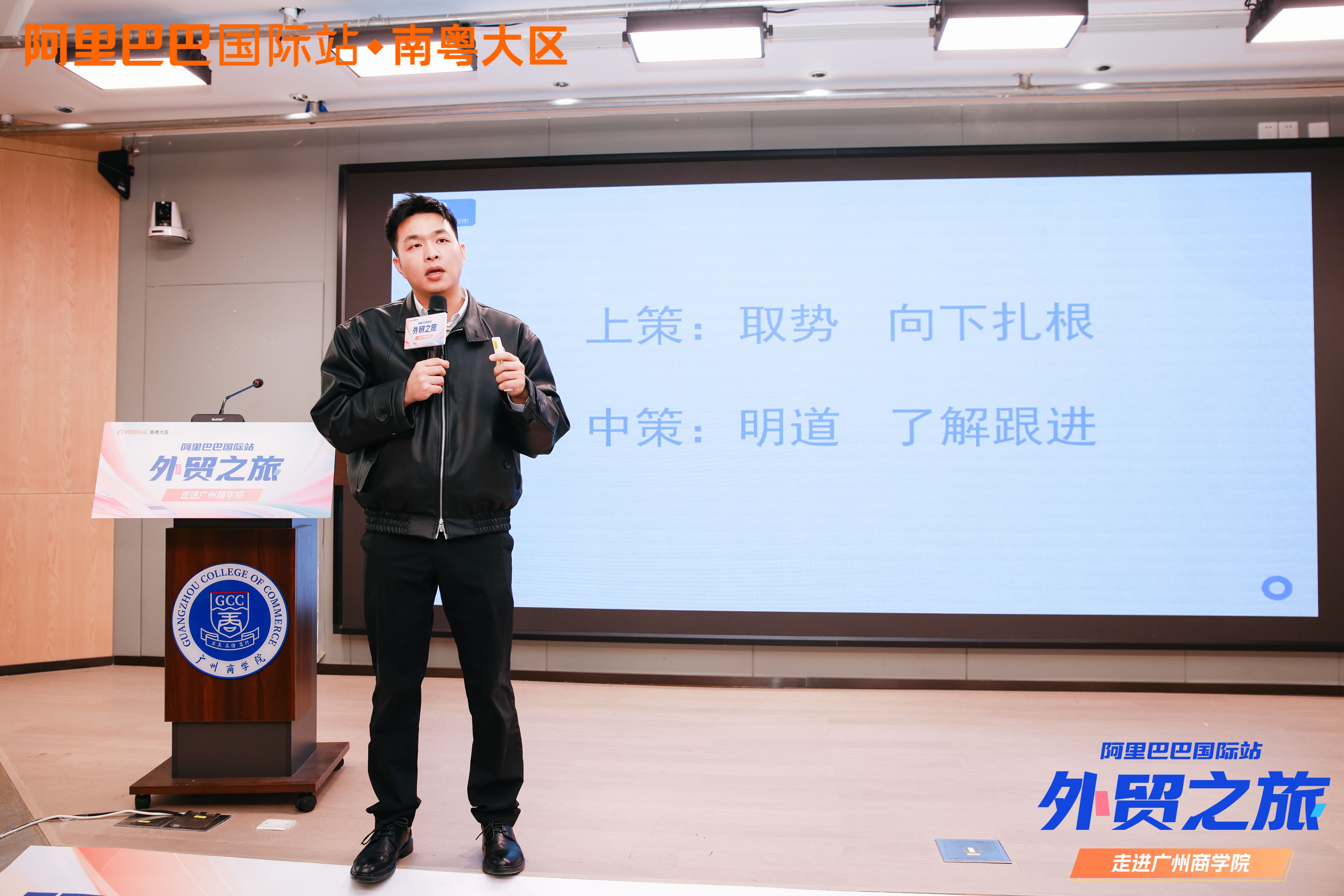 12月20日下午,阿里巴巴国际站外贸之旅——走进我校suncitygroup太阳集团活动在八教203举行,出席本次活动的有阿里巴巴国际站南粤大区人才项目负责人谭晓莉、阿里巴巴国际站南粤大区天河区域经理郑晓楠、广州大洋教育科技有限公司总经理杨华智及各位商家代表、学校副校长熊建文、suncitygroup太阳集团党总支书记汪椿东、suncitygroup太阳集团常务副院长舒光美、suncitygroup太阳集团副院长白丽。
