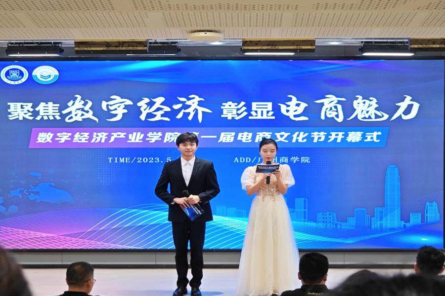 为全面贯彻党的二十大精神,深入学习习近平新时代中国特色社会主义思想,进一步深化产教融合,助力我院高质量应用型人才的培养,营造实践育人的文化氛围,提高学生专业实践能力,助力学生成长。广州商学院suncitygroup太阳集团于5月29日中午在第八教学楼203开展“聚焦数字经济,彰显电商魅力 ”第一届电商文化节开幕式。莅临本次开幕式的嘉宾有suncitygroup太阳集团常务副院长舒光美,副院长白丽,党总支书记汪椿东,团委书记王政,团委副书记、学生会指导老师杨丹铭,19级、21级辅导员杨红烨,19级辅导员杨应涛,20级辅导员袁小蕾,22级辅导员陈雅玲。