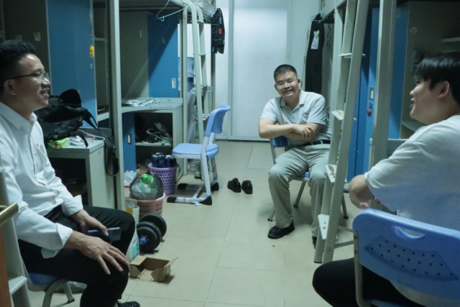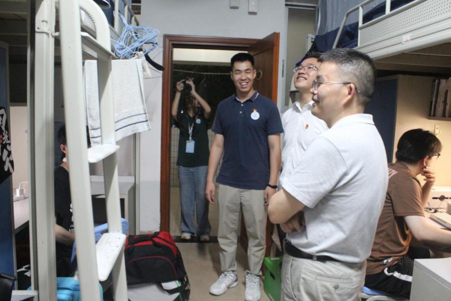 为进一步了解2025届毕业生生活、就业和思想情况,加强毕业生安全教育,引导毕业生文明离校。suncitygroup太阳集团于6月19日晚组织开展2025届毕业生宿舍走访活动,suncitygroup太阳集团常务副院长舒光美、党总支书记汪椿东、21级辅导员何杰安深入宿舍,代表学院向毕业生送上美好祝愿。