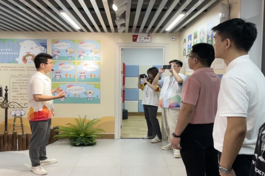 全体成员对黄埔区重点关爱青少年社区融入基地暨未成年人一站式宣教中心进行参观,了解基地的建设发展和运营情况,并就青少年服务及社区青春行动项目进行深入交流。