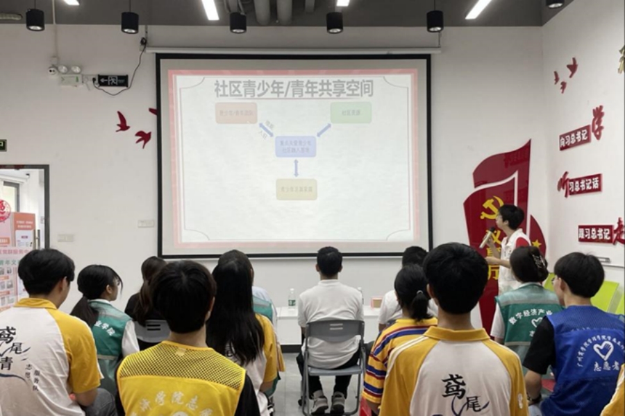 会议伊始,黄健安社工带领所有参会成员回顾过去的一年里,各学院服务队与社工站联合开展的各项志愿活动,体现了志愿者强烈的责任感和使命感,克服了众多挑战和困难。他们积极参与校园和社区一系列关爱青少年活动,通过“知识宣教+线下游戏”等互动形式,让青少年在欢乐轻松的活动中学习宣教知识,在潜移默化中接受法治熏陶,更好地促进青少年学生心理健康和法治教育的全面素质发展,助力法治意识在孩子们心中生根发芽。