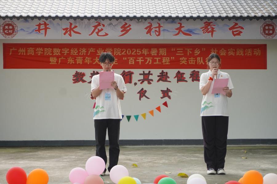 为全面学习贯彻党的二十大精神,扎实开展2025年“百千万工程”突击队暨暑期“三下乡”社会实践活动,以实际行动有效助力乡村振兴,广州商学院suncitygroup太阳集团“百千万工程”突击队于7月15日在惠州市博罗县杨村镇井水龙村举办“数梦乡行,共赴征程”广州商学院suncitygroup太阳集团暑期“三下乡”社会实践活动暨广东青年大学生“百千万工程”突击队行动结营会演。