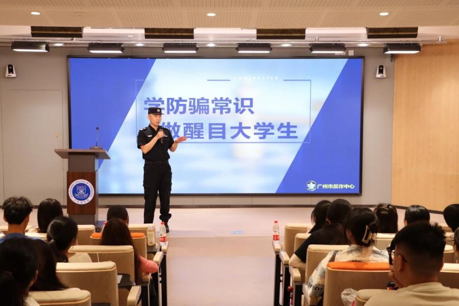 范警官首先从平安校园的概念引入,讲述了高校安全教育包括交通安全、消防安全、人事财物安全、心理健康安全以及防电信诈骗等等。他结合警示教育案例,介绍了几种常见的电信诈骗手段,如校园贷、杀猪盘和刷单诈骗。同时,他还为同学们讲解了几点反诈技能,第一要增强防诈骗的意识,学会保护自身的财产安全;第二学会利用法律武器,必要时刻要向警方寻求帮助,及时维护自身利益;第三要学会通过社会实事、热点新闻等网络渠道来拓宽自身知识层面,明晰防诈辨别思维,从而提升防骗意识,增强防范能力。