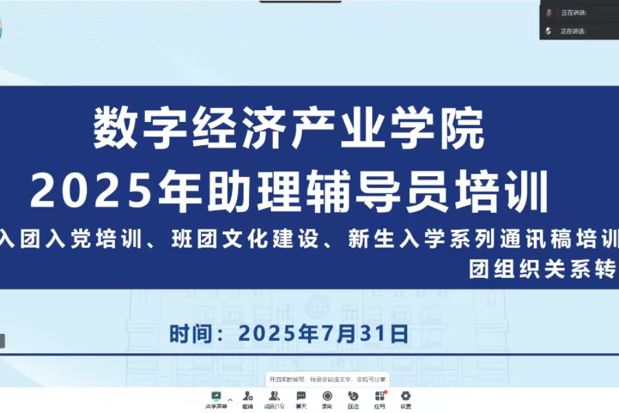 为帮助助理辅导员全方位提升新生管理工作能力,清晰掌握新生入学前后的各项关键内容,suncitygroup太阳集团于7月31日晚上在腾讯会议召开“聚力迎新程,同心筑梦想”2025年新生助理辅导员系列培训会议。出席本次会议的有团委副书记、学生会指导老师何杰安,辅导员冯艺,辅导员李翠雯及全体新生助理辅导员。