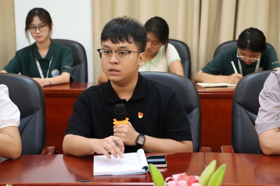 2023级新生辅导员翁佳霖从新生报道流程、协助新生报道注意事项、迎新应急准备等方面所需要的细节进行了疏导。他强调工作人员在工作中需要做好万全准备,认真负责完成各项工作,并鼓励工作人员在接下来的迎新工作中,能够用最饱满的工作热情,认真务实的工作作风,为2023年迎新工作贡献自己的力量。
