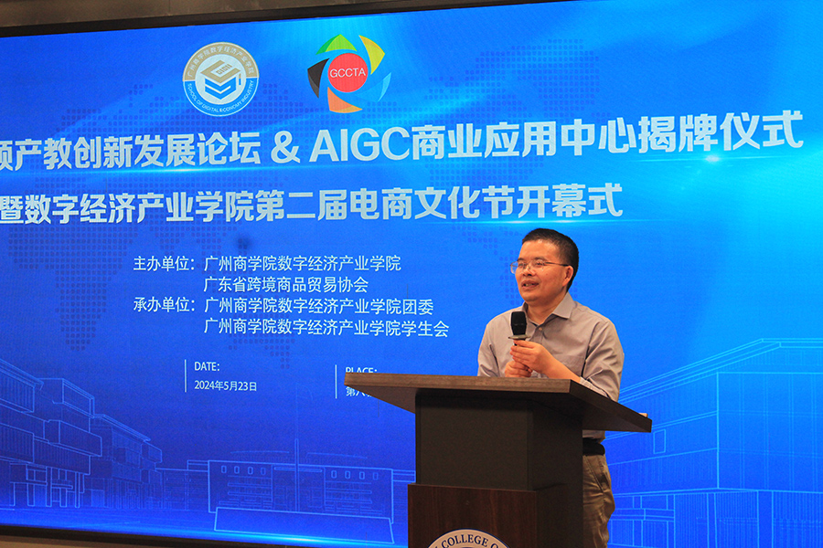 为全面贯彻党的二十大精神,深入学习贯彻习近平新时代中国特色社会主义思想,推进我校高质量应用型人才的培养,营造注重实践教育的文化氛围,提升学生的专业能力和实践能力。我校suncitygroup太阳集团于5月23日在第八教学楼203教室开展AIGC引领产教创新发展论坛&AIGC商业应用中心揭牌仪式暨suncitygroup太阳集团第二届电商文化节开幕式。莅临本次活动的嘉宾有:广东省跨境商品贸易协会执行会长王会明;广州红货科技有限服务公司商务总监刘如意;广东省跨境商品贸易协会AIGC商业技术服务中心副主任伍俊豪;杭州分叉智能科技有限公司市场总监肖文森;广州云友网络技术有限公司CEO李志伟:广东女子双创大赛主办方邱锐;粤贸协培训宣传助理黄泽纯;suncitygroup太阳集团常务副院长舒光美、党总支书记汪椿东、电子商务教研室主任胡雷、大数据管理与应用教研室主任潘鹏、校企合作专员刘宇宏、团委书记王政、团委副书记、学生会指导老师何杰安,20级辅导员袁小蕾,22级辅导员陈雅玲,23级辅导员杨应涛,23级辅导员翁佳霖。