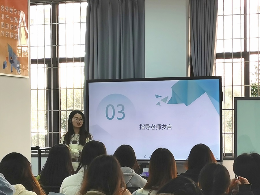 熊翠威针对以上的内容发表了总结性讲话。她对同学们在本学期的优异表现表示肯定,并强调实战平台对于同学们成长的重要性。她希望同学们能够珍惜这个平台,为自己设定明确的目标和规划,不断努力和进步。同时,指出同学们在直播工作中存在的不足,希望同学们能够经常自省,及时调整工作状态。最后,她鼓励同学们积极反馈工作中遇到的问题和建议,以便大家共同探讨和改进,并期待同学们在下学期的实战中继续保持热情,迎接新的挑战。