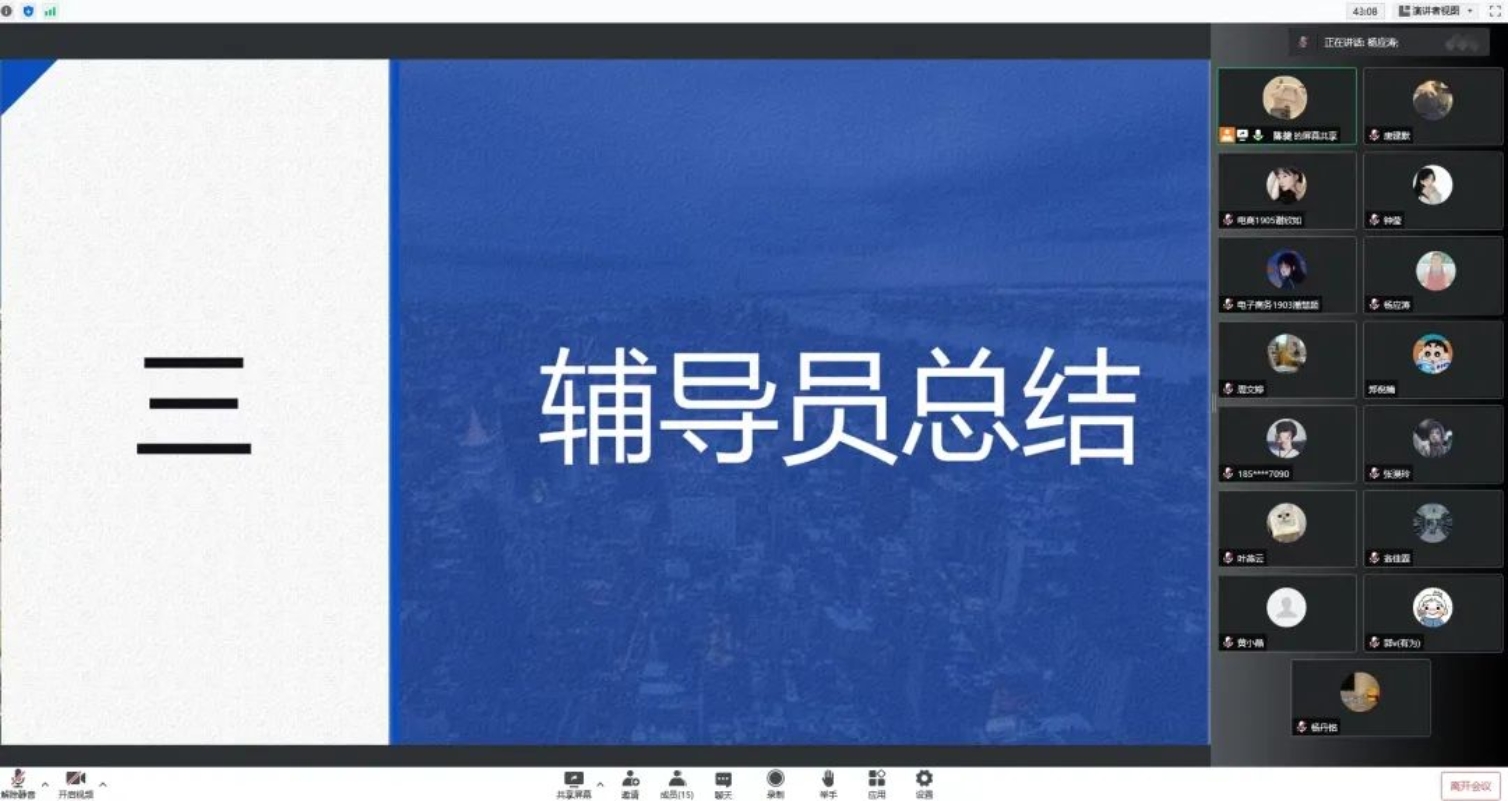 为进一步提升助理辅导员的业务水平,顺利统筹新生工作安排,广州商学院suncitygroup太阳集团于8月4日晚上21:30在腾讯会议召开“夯实基础强素质,笃行不怠续新篇”第三场新生助理辅导员培训会议。参与本次培训会议的有2020级专升本辅导员王政,2022级辅导员杨丹铭、陈婕以及全体新生助理辅导员。