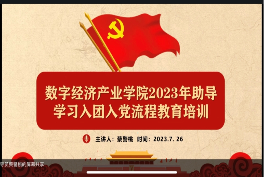 蔡警桃对入党入团流程进行系统地介绍,她从总体流程、申请书格式、注意事项等三方面进行详细讲解。蔡警桃提出要加强组织领导,助力发展优秀的青年党员、团员。她强调助理辅导员们要切实做好入党入团的宣传工作,牢记入党入团的步骤及要求,在为新生答疑解惑的同时,更要做好新生的思想引领工作。